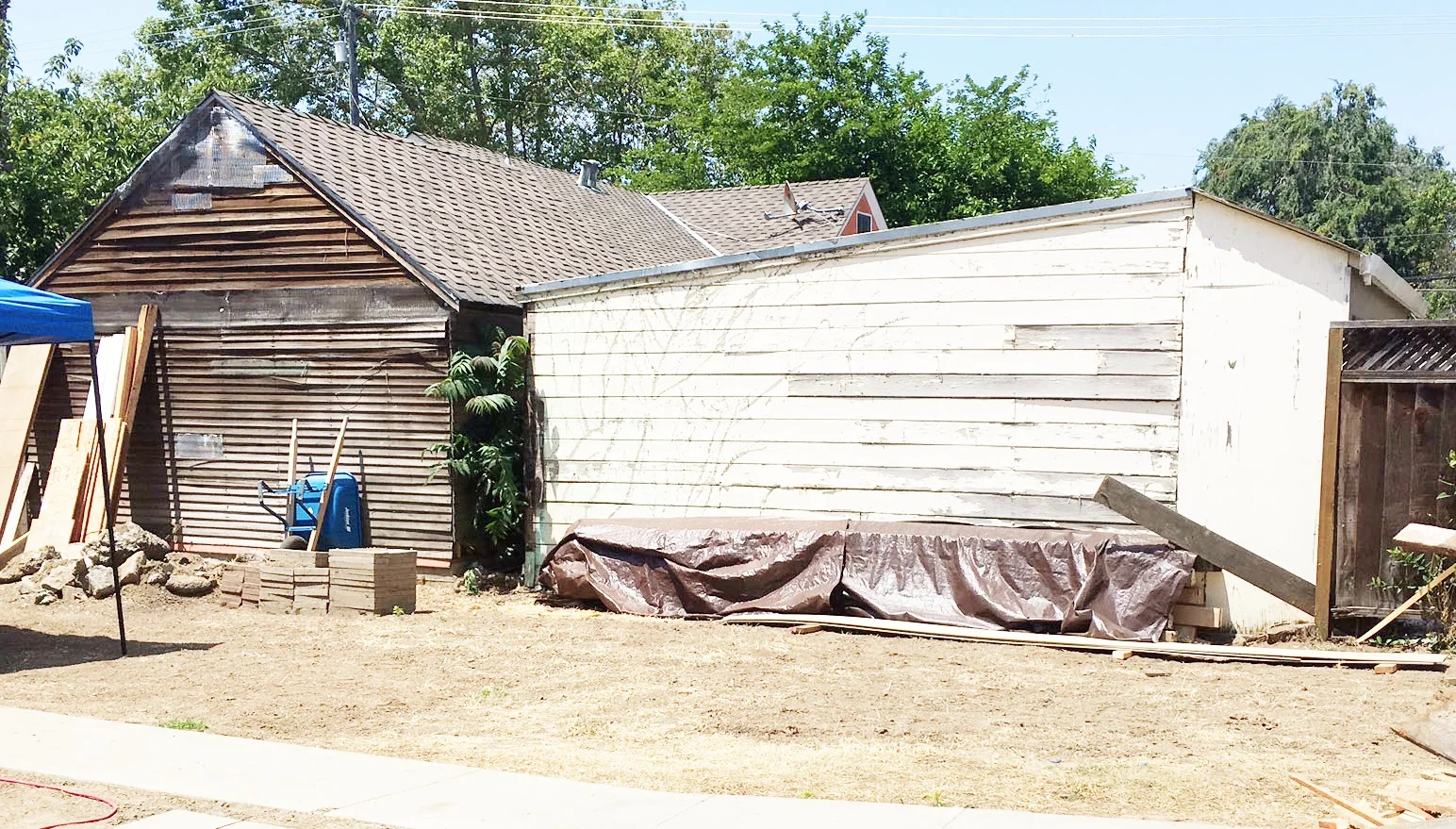 Remember this lovely wall? These ramshackle shacks are the back sides of our 2 neighbors garages. I'm sure you'll agree they were a bit of an eye sore.