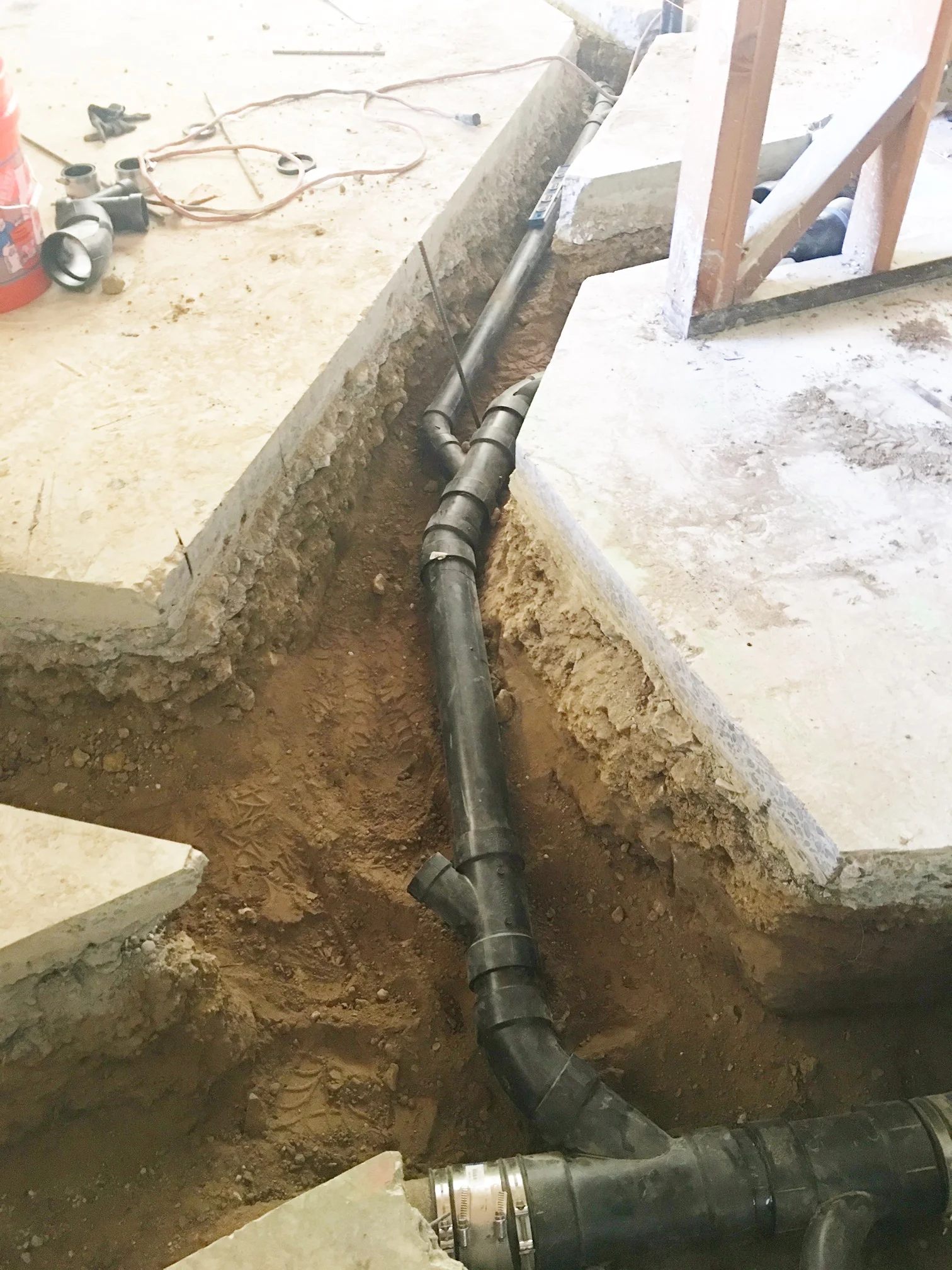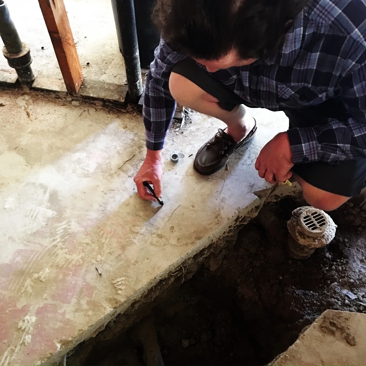 Unfortunately, this vintage modern house is slab on grade, which was the construction style, for efficiency sake. However, this means there is not a basement or crawl-space to run all the plumbing so we have to cut through the slab everywhere that we want to move waste pipes!