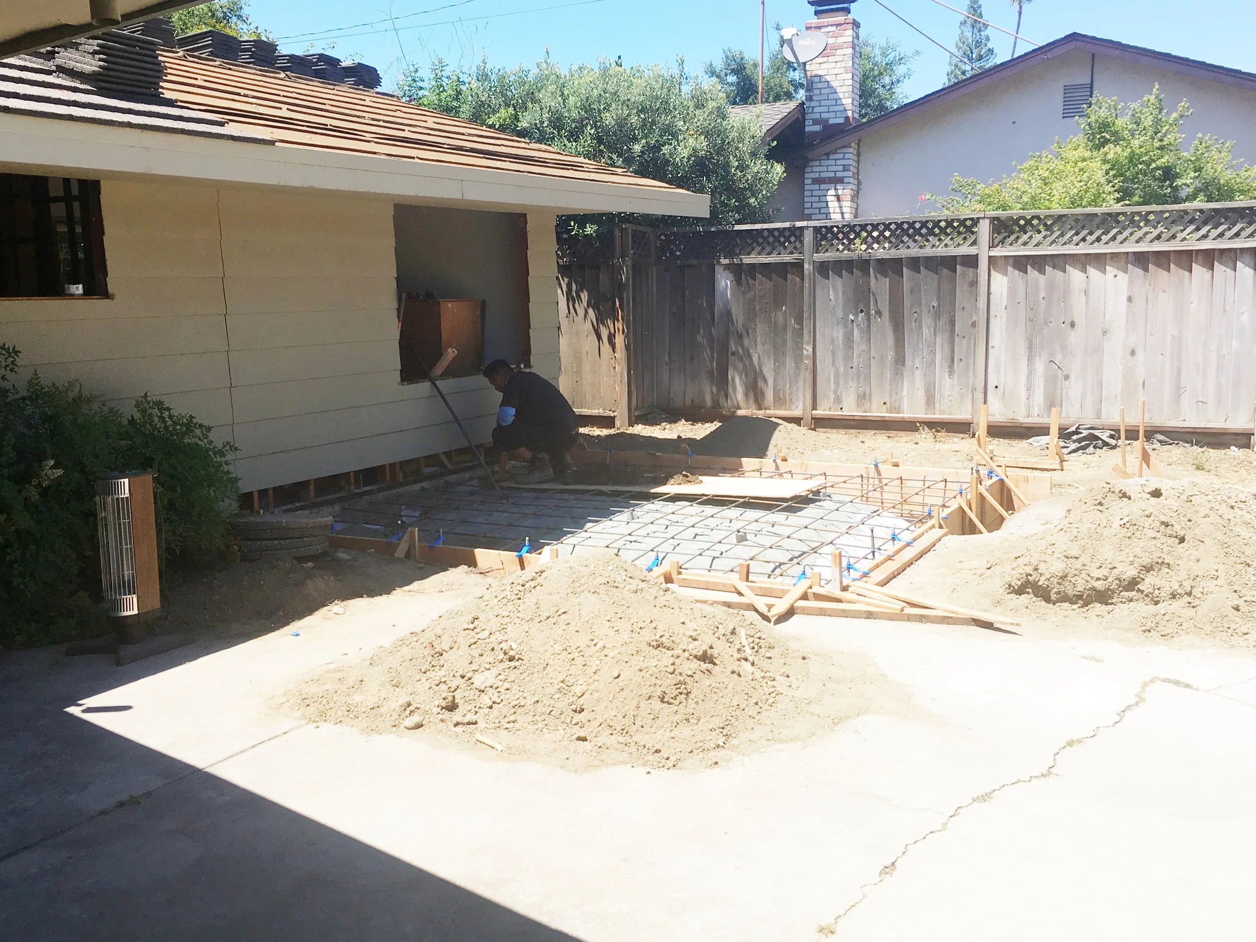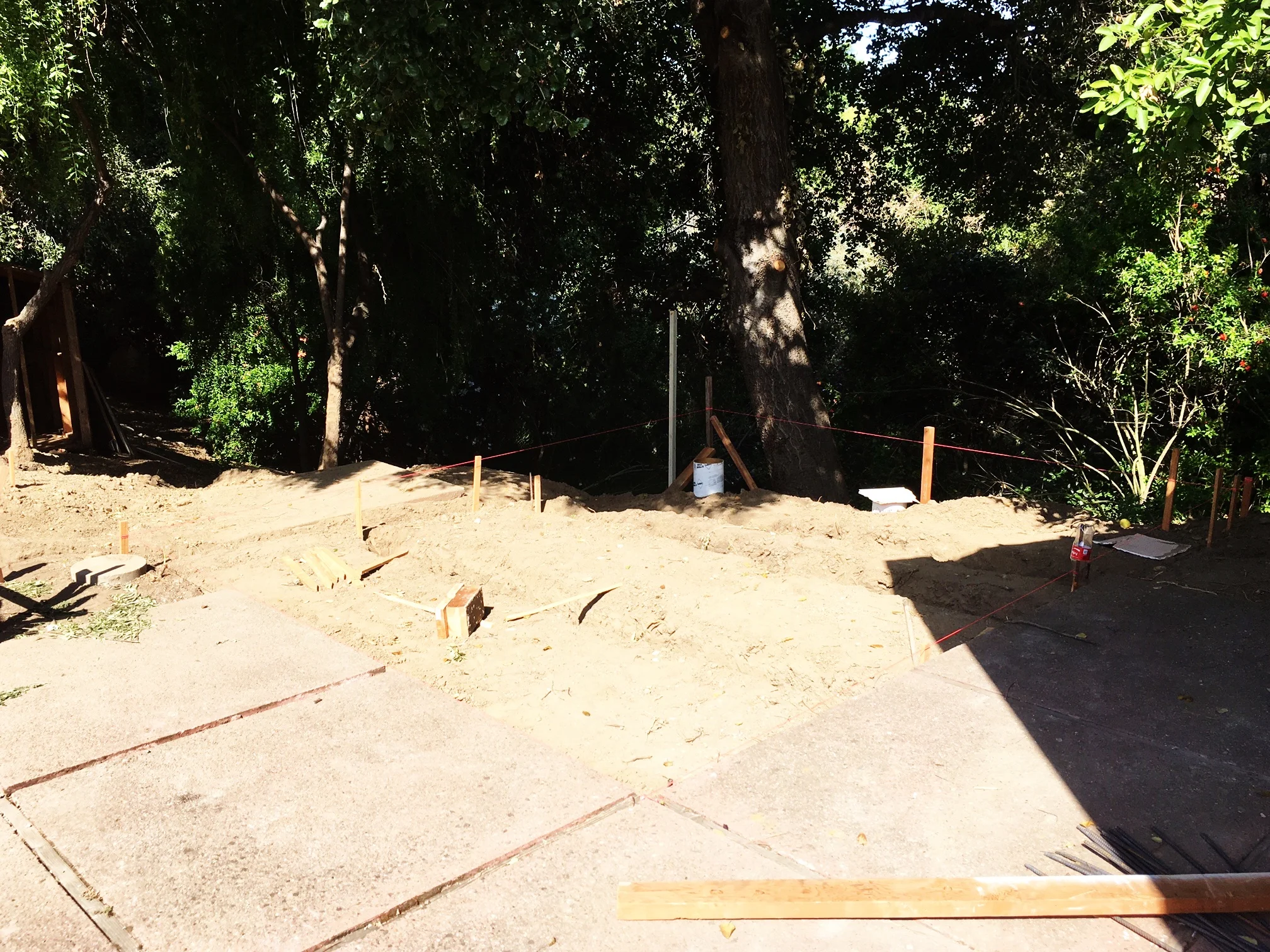 This dirt area is soon to be a 12" x 14" cantilevered deck under the giant oak tree. It's going to be a perfect entertaining and chilling-out area.