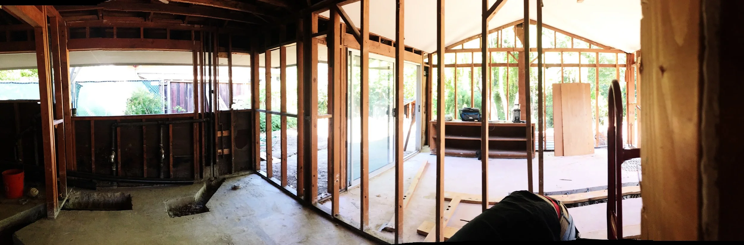 Here's a sweeping shot of the soon-to-be master suite! The open end wall gives a hint of the new view from the master bedroom