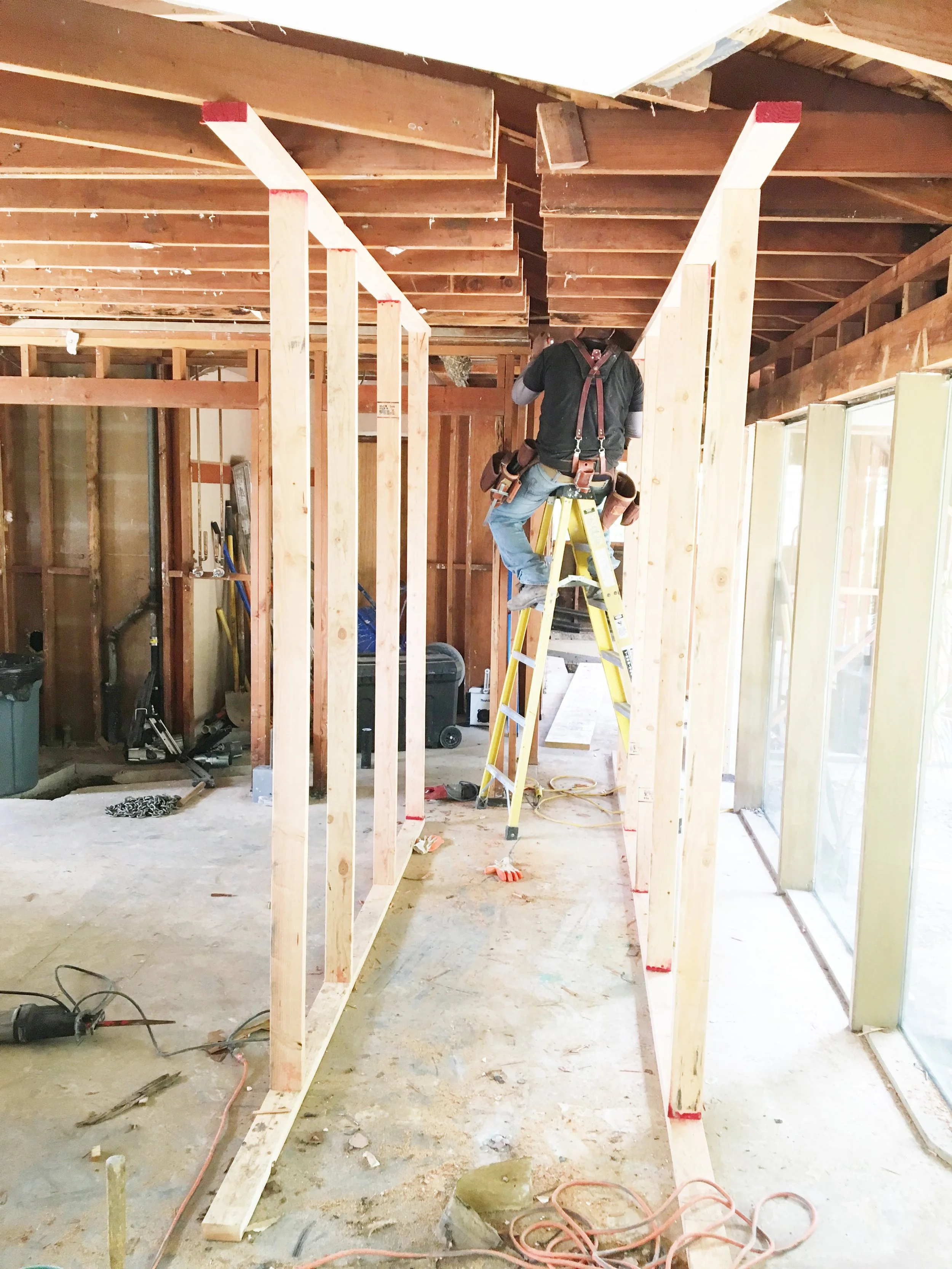 This is one of the structural beams that will allow us to remove the big wall separating the kitchen from the backyard. This will let in alot of light not to mention the views! So exciting.