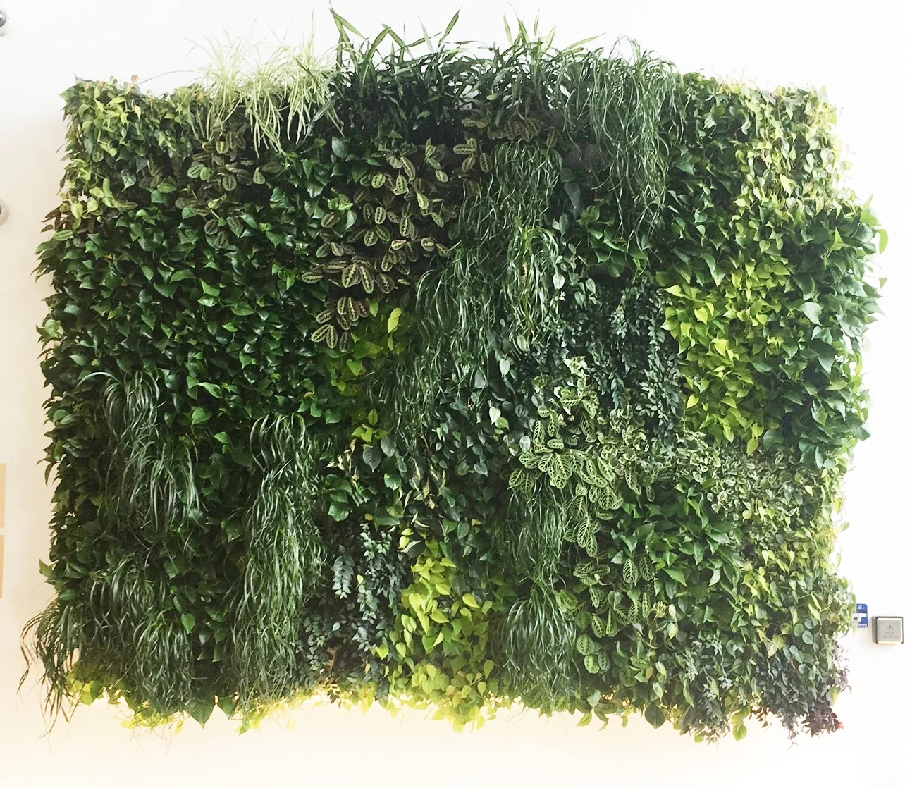 Here's a view through the soon-to-be glass curtain out to the courtyard. That square of plywood will soon be transformed to a vertical green wall!