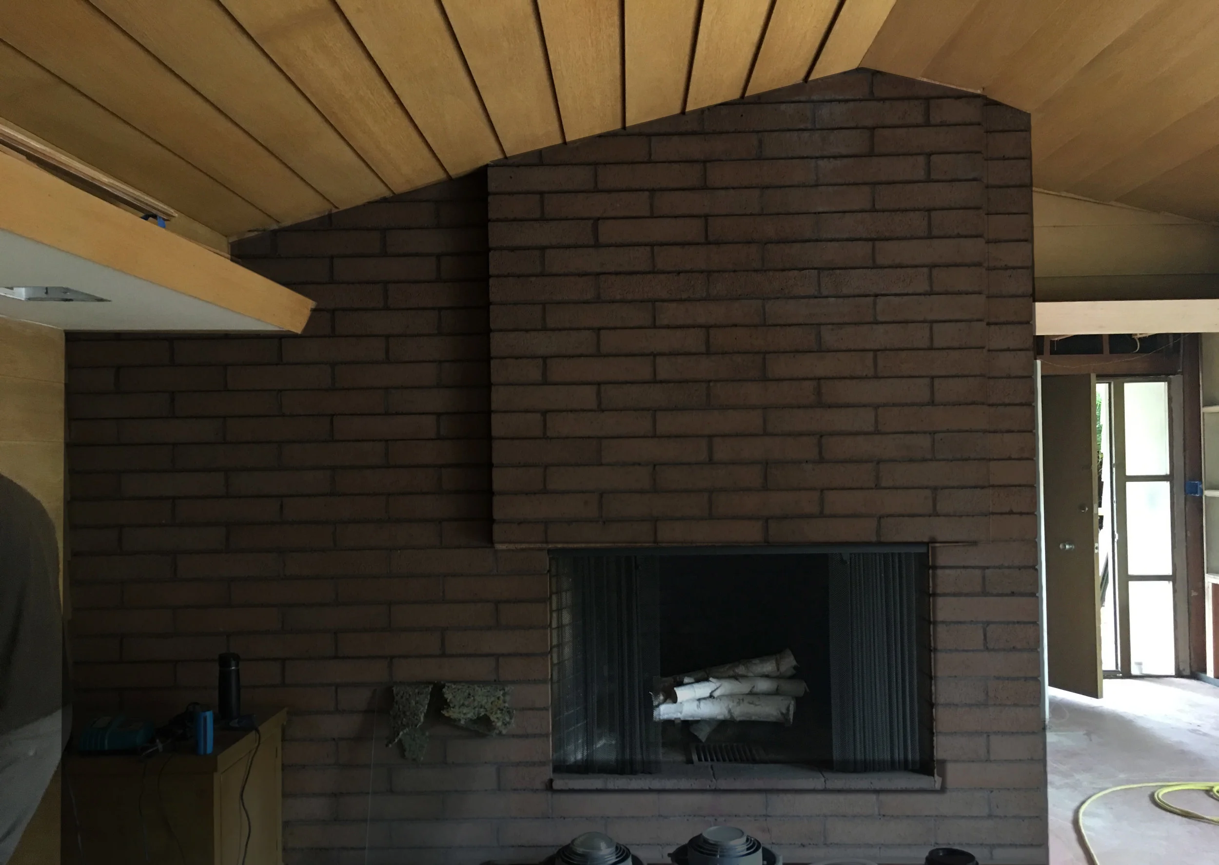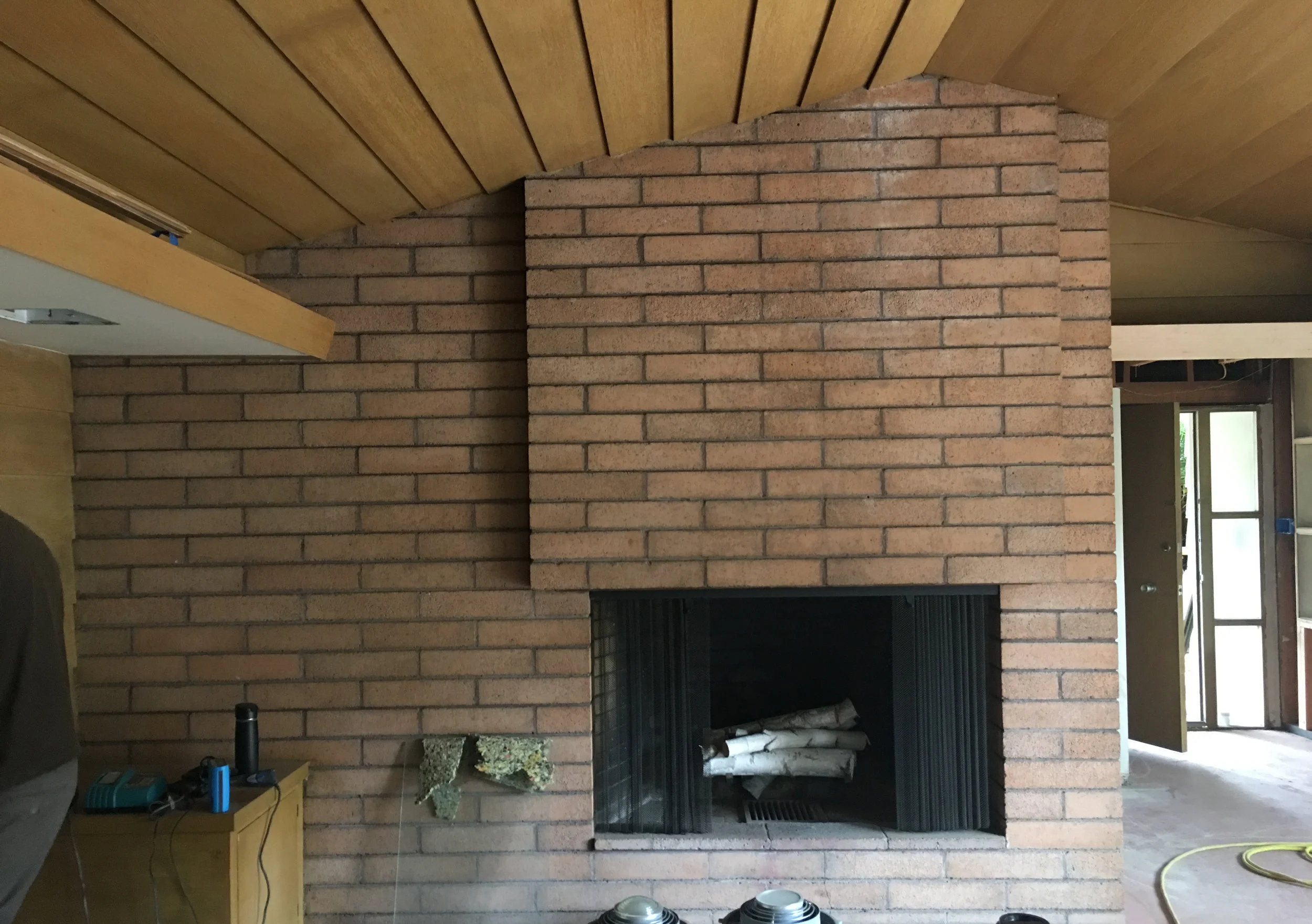 This is the original fireplace. And that alone makes me want to keep it because it was the builder's original plan. But we are trying to modernize. And I am not a huge fan of the color of the brick which is a little flesh-y in color.