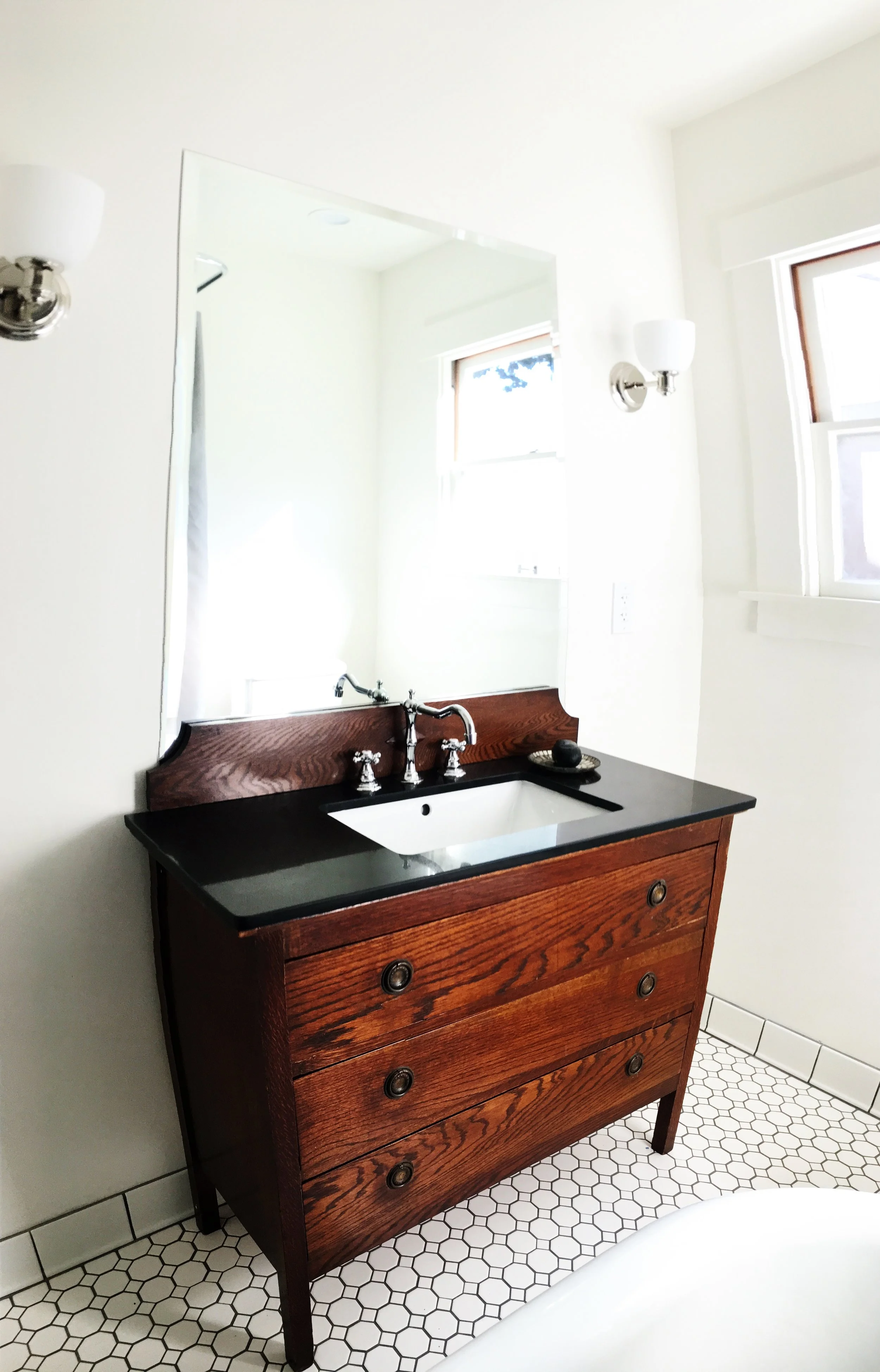 TURNING VINTAGE DRESSERS INTO BATHROOM VANITIES SEEMS TO BE ALL THE RAGE.