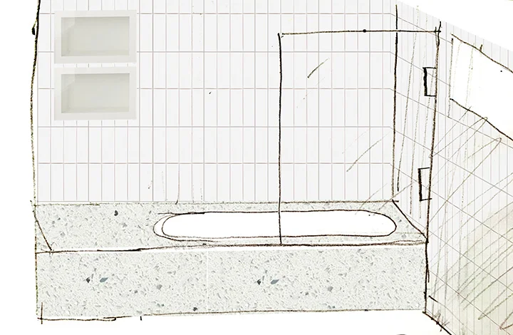 Here is a sketch of the bathtub with the materials we're using.