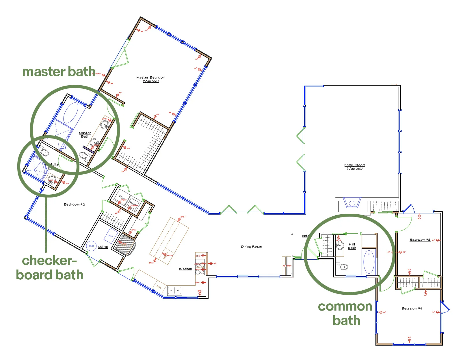 Here's an overview so you can see where each of the following bathrooms sits within the layout of the house.