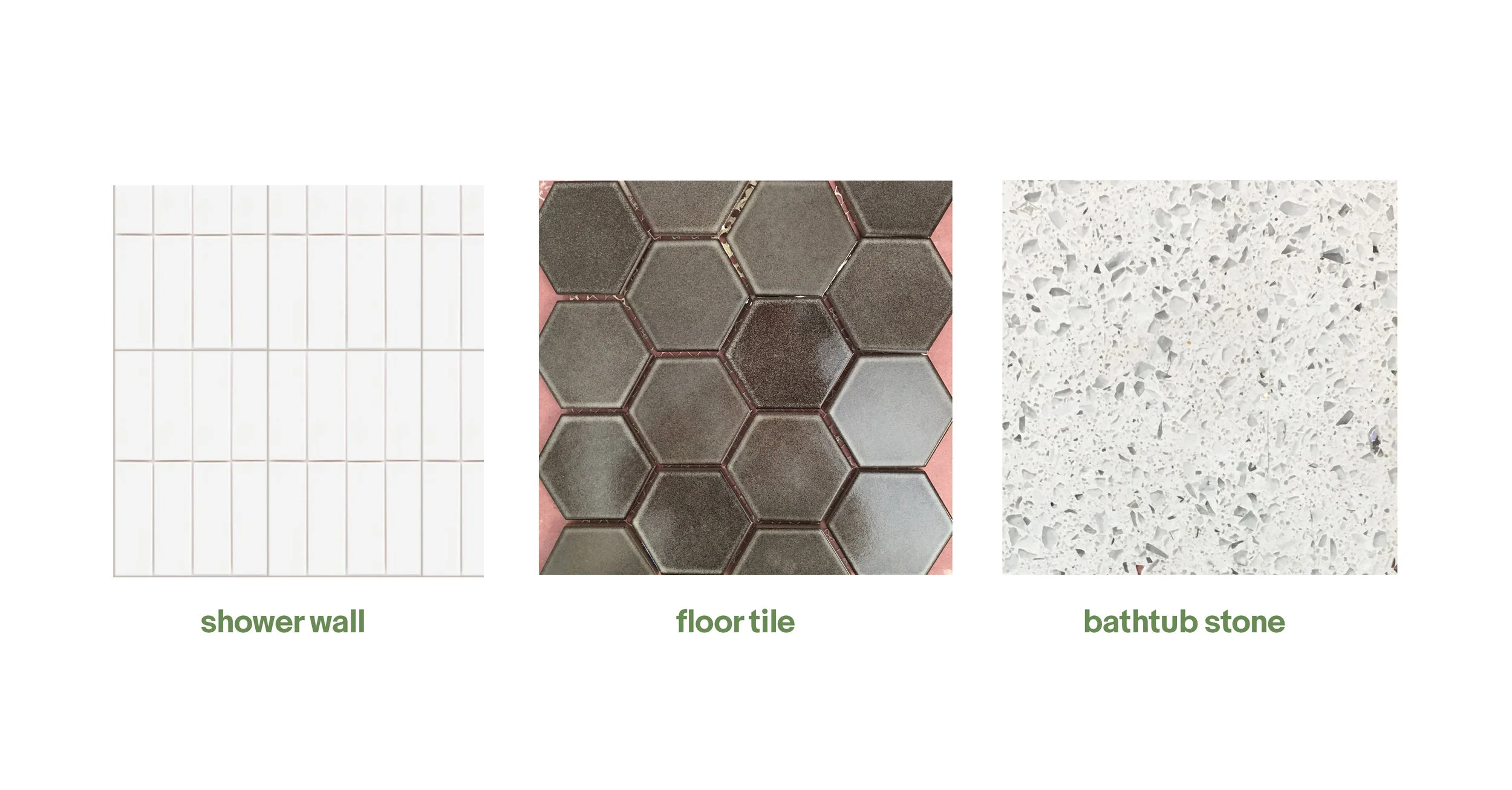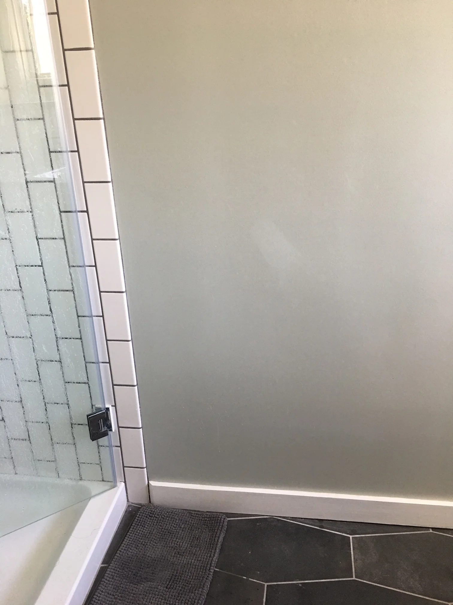 This is nice, large master bath space. We wanted it to feel spa-like, so we've chosen simple, calm colors. White and gray. Are you seeing a pattern?