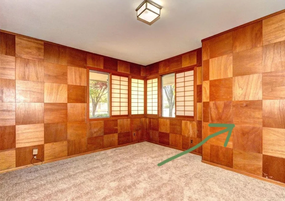 This shot was from MLS. Trust me, it doesn't look like this now. It looks like it was hit by a tornado. But I wanted to show you where the new bathroom will go. It goes where this wall on the right used to be. It was sad to lose that custom mahogany but happy to add a full bathroom. It added a bunch of value.