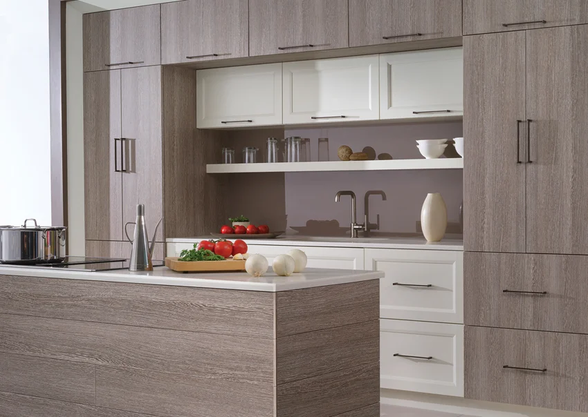 We are using DuraSupreme Cabinets. This is a reference shot of a kitchen with similar cabinets to what we are going to install. However, ours are more vertical in nature, like the island in the image below.