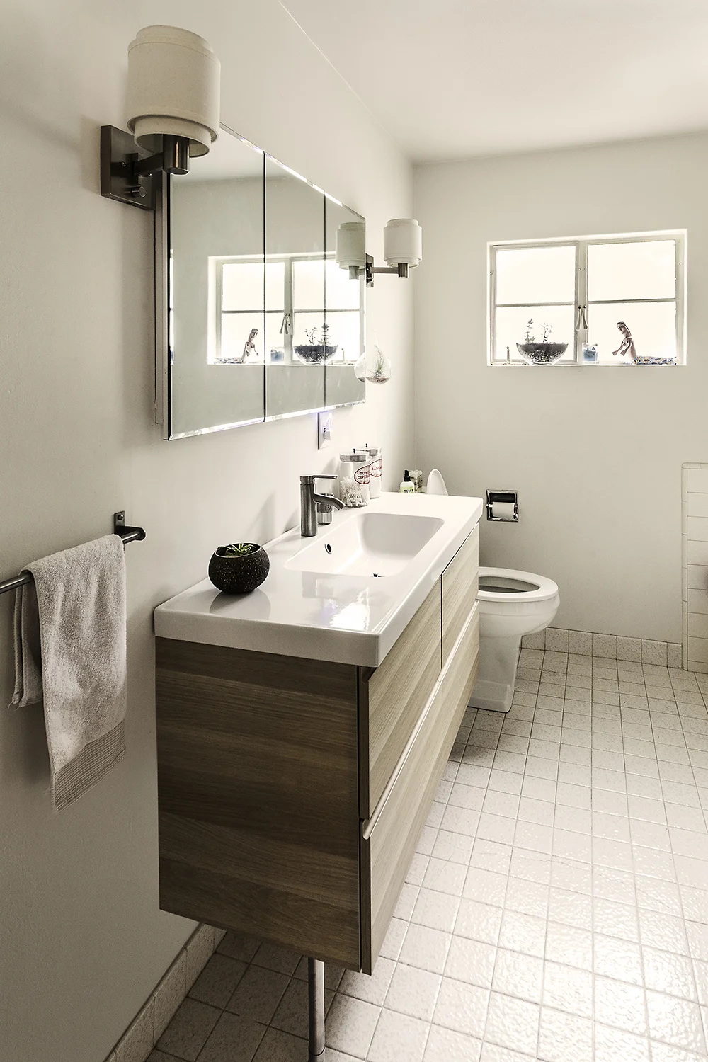 This mid-century modern’s original owners had shied away from it roots, masking its 50's moderne style with ranch kitsch. We stripped back the shag carpets revealing pristine parquet floors, opened up the floor plan and created an inviting outdoor living room. No longer the outcast in this sea of tudors and bungalows, these are digs that FLW would be right at home mixing up a batch of Manhattans.